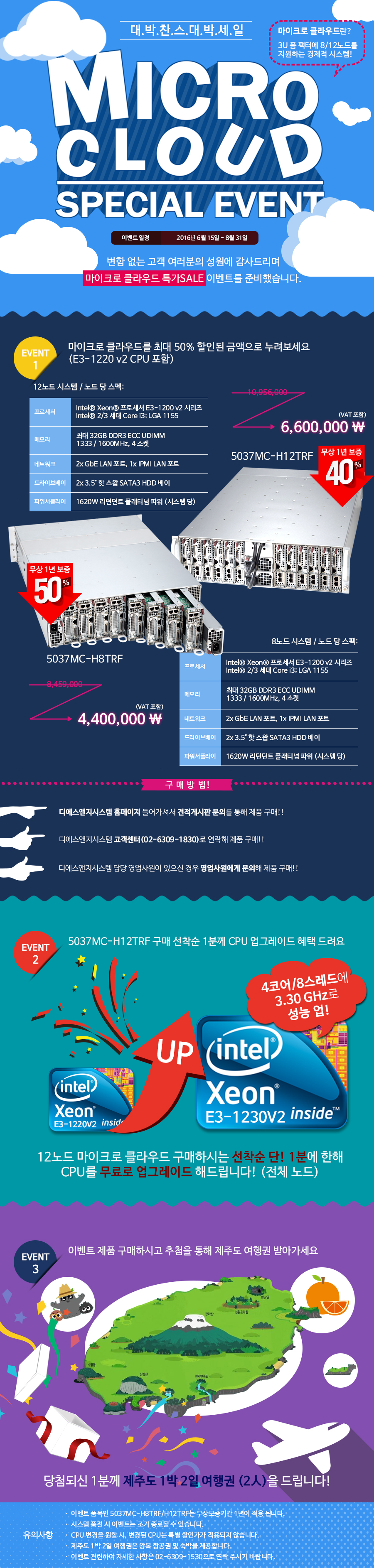 특가 이벤트 외에도 CPU 업그레이드, 제주도 여행권 추첨 이벤트 등이 마련되어 있으니