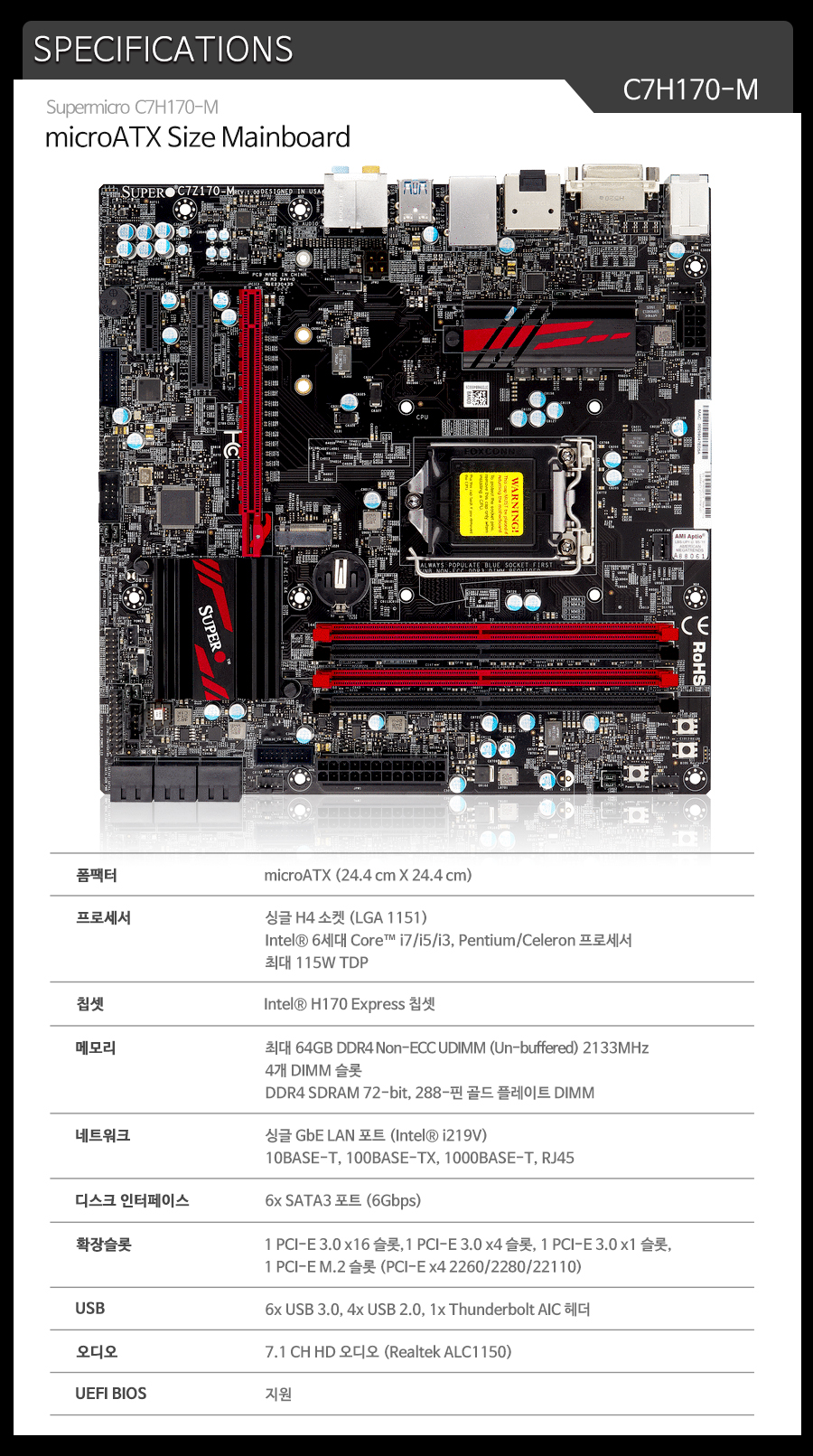 <오버클럭 전용 메인보드 C7Z170-OCE SPECIFICATION>