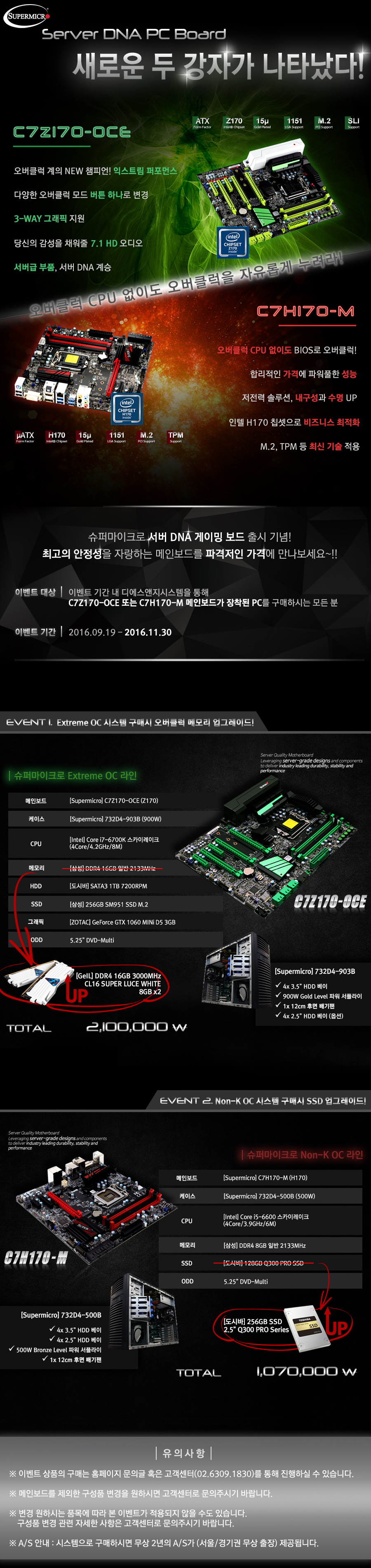 이벤트1. 기간 내 오버클럭 전용 메인보드인 C7Z170-OCE 기반 시스템(PC)을 구매하시면