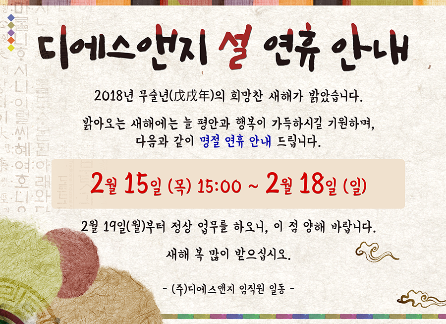 2018 디에스앤지 설 연휴 공지