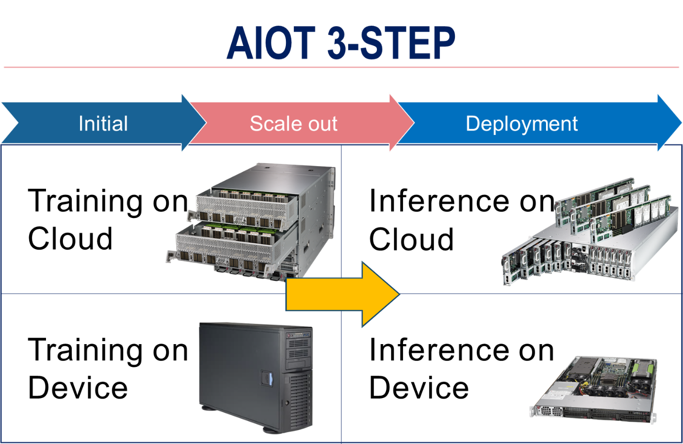 게다가 AI와 IoT가 결합된 AIoT 분야가 급부상 중인 최근의 흐름에 비추어 GPU 팜(Farm)은 더욱 이상적인 GPU 사용 환경입니다. 현재 AIoT 산업은 초기(Initial) 단계를 지나 확장(Scale out) 단계로 접어들었습니다. 확장 단계로 들어서며 더 많은 AIoT 기반의 서비스와 어플리케이션을 제공하기 위해 GPU 시스템에 대한 수요가 증가하고 있습니다. 초기 단계와 달리 어떤 IT 환경에서 사용할지 그리고 어떤 Deep Learning 기술을 적용할지에 따라 GPU 시스템 선택의 폭이 넓어졌습니다. GPU 팜(Farm)에 최적화된 9029GP-TNVRT의 경우, 다수의 GPU와 아주 높은 GPU 성능 그리고 최상의 GPU-to-GPU bandwidth를 기반으로 하여 클라우드 환경에서 Training(학습) 워크로드를 수행하는 데 가장 적합한 시스템입니다.