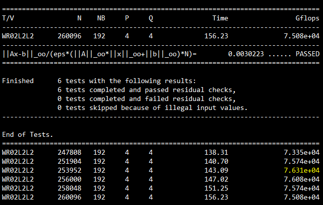 ▲ HPL Benchmark: 최대 76.3TFLOPS