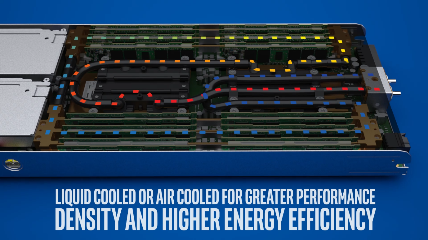고성능 워크로드를 위해 공랭식은 최대 350W 프로세서 TDP를 지원하며, 수랭식은 최대 400W 프로세서 TDP까지 지원합니다.