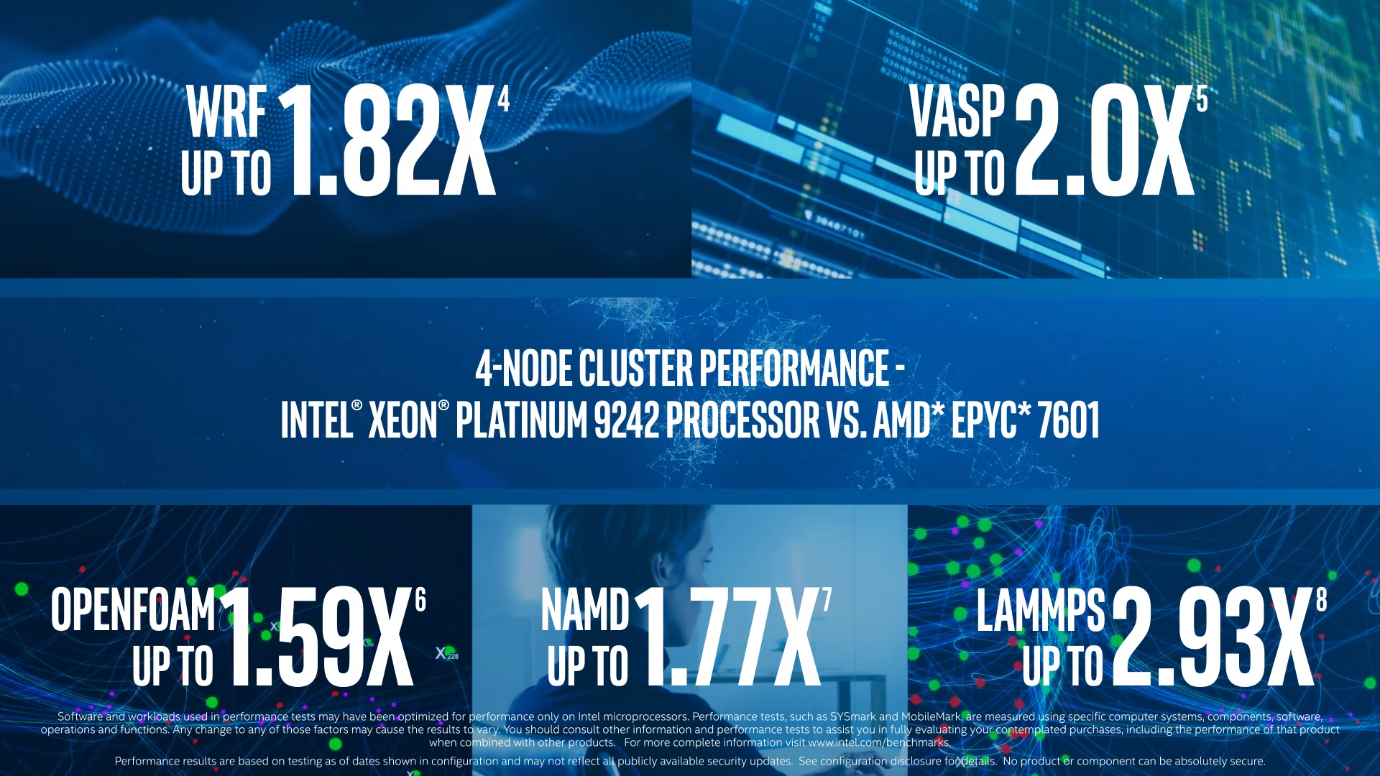 가장 복잡하고 까다로운 워크로드 처리를 위해 설계된 Intel® Xeon® Platinum 9200 프로세서는 모델 별로 각각 32, 48, 56 코어를 지원하며,