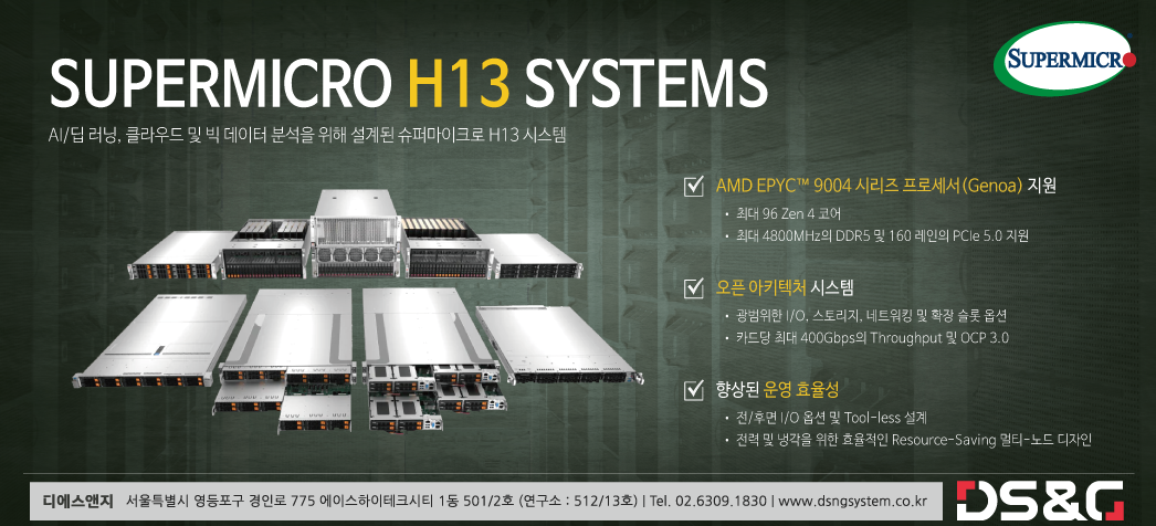 [슈퍼마이크로] AI/딥 러닝, 클라우드 및 빅 데이터 분석을 위해 설계된 슈퍼마이크로 H13 시스템