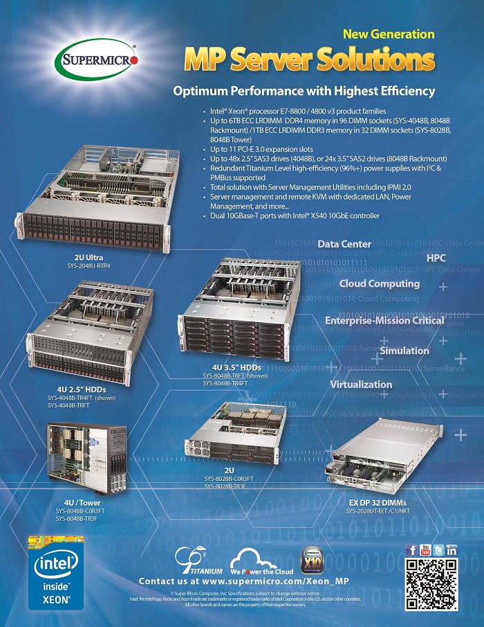 보급형인 E5-4600 v3 시리즈를 이용하는 SYS-2048U-RTR4 모델은 2U 서버로 공간을 효율적으로 쓸 수 있다.