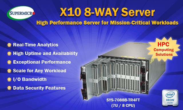 슈퍼마이크로 8-WAY 시스템인 SYS-7088B-TR4FT는 인텔 제온 E7-8800 v4 브로드웰 프로세서를 지원한다. 인텔 제온 E7-8800 v4 프로세서는 현존하는 인텔 CPU 중 최대 코어 수 및 메모리 용량을 지원 가능해 SYS-7088B-TR4FT는 최대 192 물리 코어(384 쓰레드) 및 12TB의 대용량 메모리를 제공한다. 특히 12TB의 대용량 메모리는 현재 시중의 단일 서버 중 최대 용량으로, 인-메모리 컴퓨팅에 최적화돼 있다.