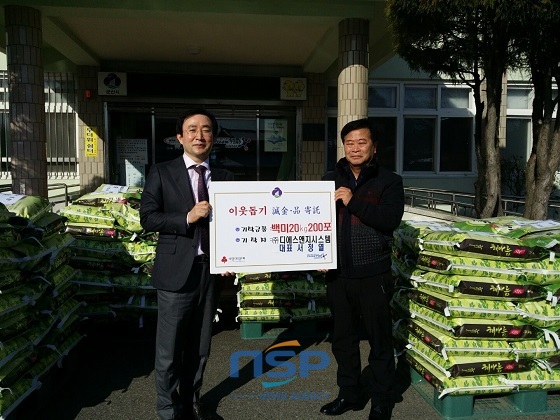 (전북=NSP통신 김광석 기자) = 디에스앤지시스템(대표 서정열)은 9일 군산시 개정면사무소를 방문, 사랑의 쌀(20kg) 200포(850만원 상당)를 기탁했다.