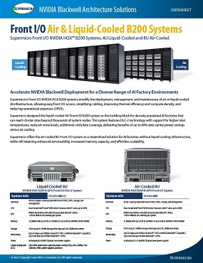 [슈퍼마이크로/DATASHEET] Front I/O Air & Liquid-Cooled B200 Systems