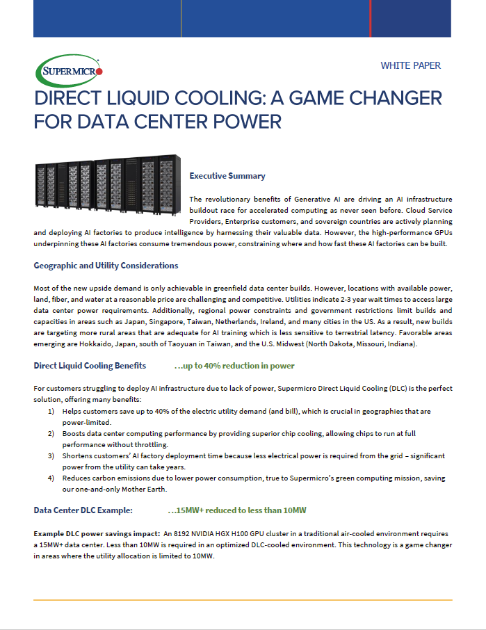 [슈퍼마이크로/White Paper] Direct Liquid Cooling: A Game changer for Data Center Power