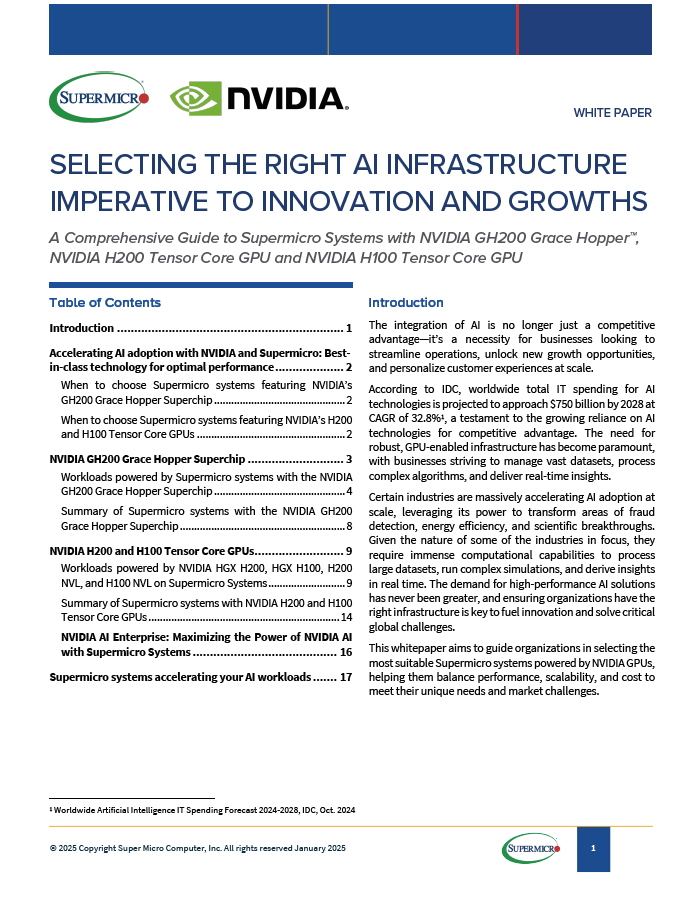 [슈퍼마이크로/White Paper] Selecting the Right AI Infrastructure Imperative to Innovation and Growths