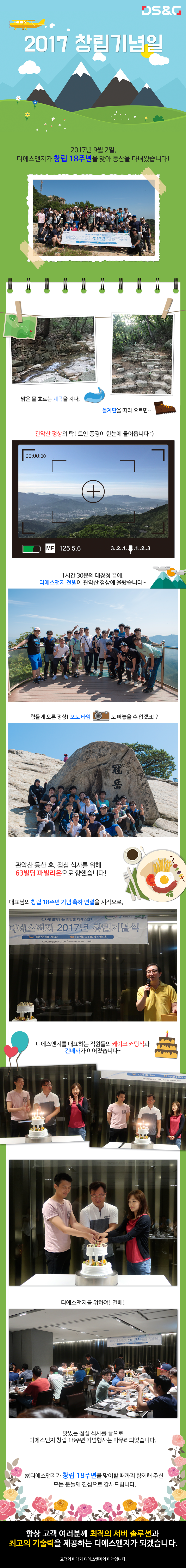 2017년 9월 2일, 디에스앤지가 18번째 창립기념일을 맞아 관악산 등반을 다녀왔습니다!