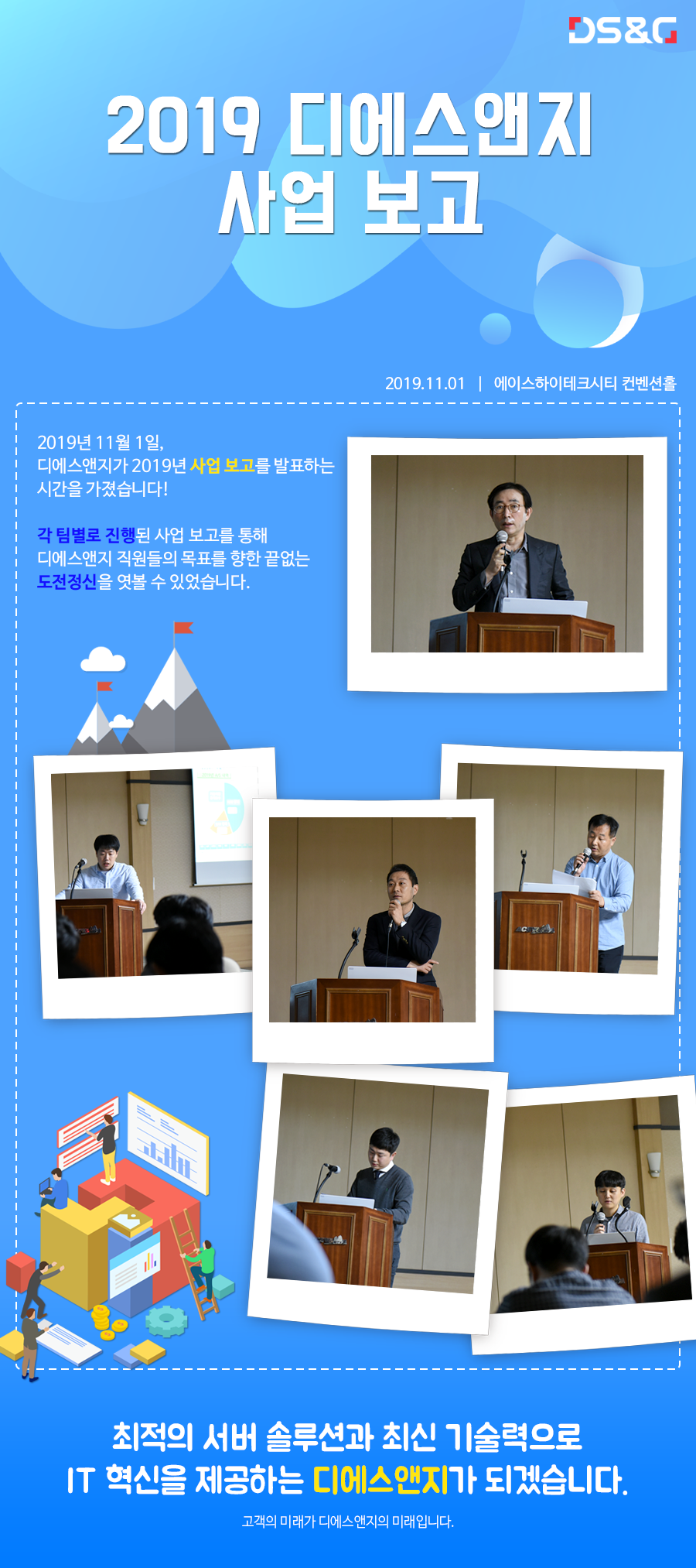 2019년 11월 1일, 디에스앤지가 2019년 사업보고를 발표하는 시간을 가졌습니다.