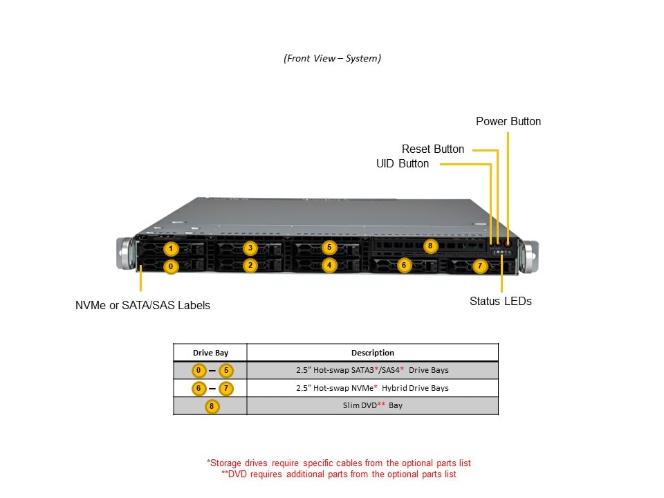 | *Power Supply | PWS-860P-1R2 | 2 | 1U 860W, Redundant power supply, 54.5mm width, Platinum with |