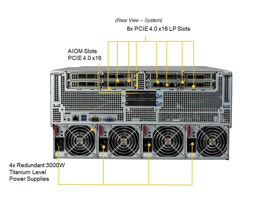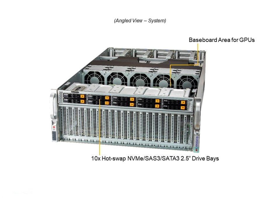 Key Applications Edge Computing Micro Data Center AI/ML, Deep Learning Training and Inference Virtualization Cloud Computing Key Features 1. NEBS Level 3 certified 2. Dual Socket P (LGA 3647) support 2nd Gen Intel® Xeon® Scalable processors (Cascade Lake/Skylake)‡ 3. 12 DIMMs; up to 3TB 3DS ECC DDR4-2933MHz† RDIMM/LRDIMM, Supports Intel® Optane™ DCPMM†† 4. 4 PCI-E 3.0 x16 (FHFL) slots, 2 PCI-E 3.0 x16 (LP) slots 5. 2 Hot-swap 2.5" SAS/SATA drive bays, 2 Internal 2.5" SATA drive bays 6. Support 1x M.2 2242/2260/2280, Support M.2 SATA and NVMe 7. 2x 10GBase-T LAN ports via Intel X540 8. 9 Heavy duty 4cm counter-rotating fans with air shroud & optimal fan speed control 9. 2000W Redundant Power Supplies Titanium Level (96%) |