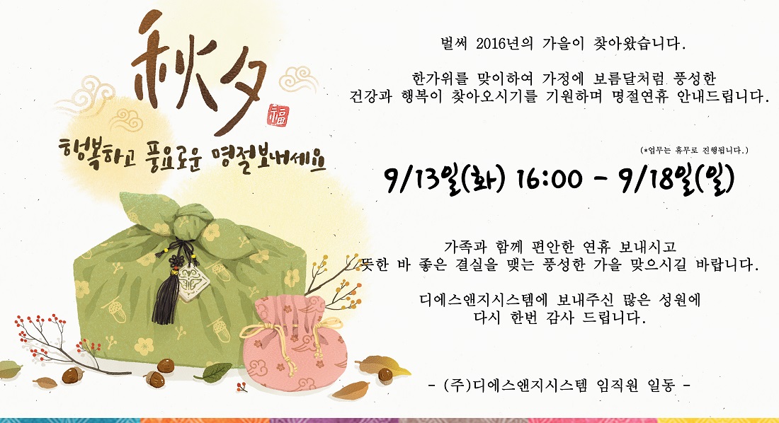 디에스앤지시스템 추석 연휴 공지 (9/13 16:00~9/18)