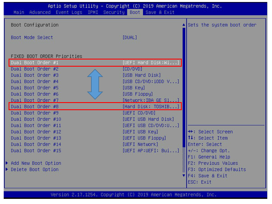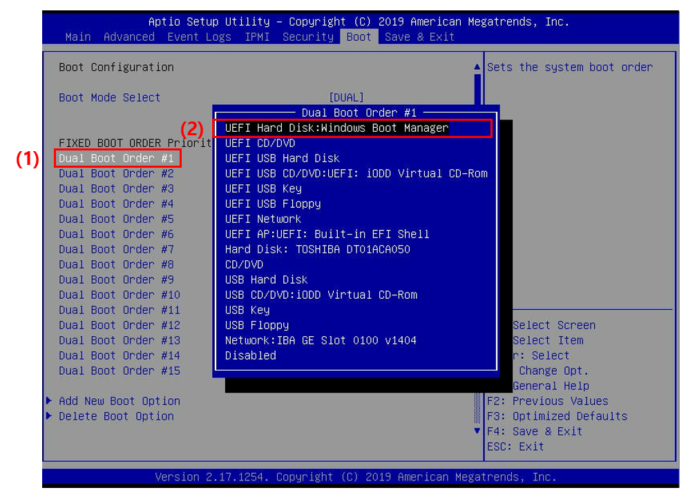 -아래와 같이 첫 번째 부트 순서가 "UEFI Hard Disk: Windows Boot Manager"로 설정되었다면 "F4"를 입력하여 BIOS 설정 저장 및 재부팅을 합니다.