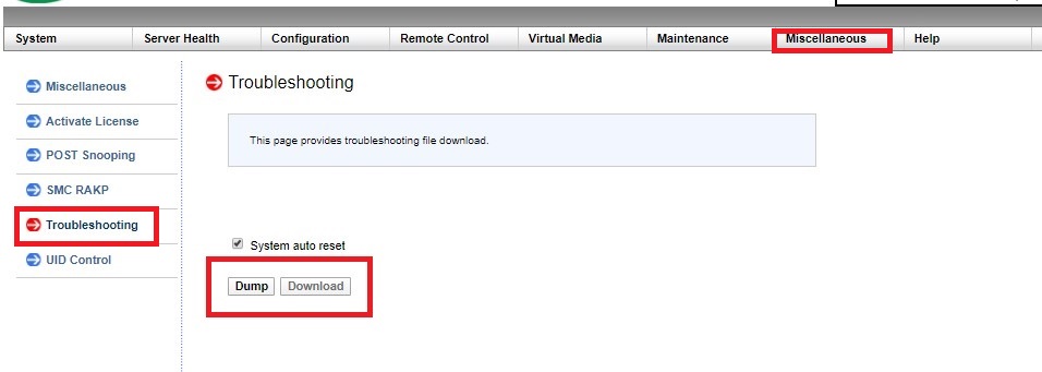 IPMI web – Miscellaneous –Troubleshooting-Dump-Download
