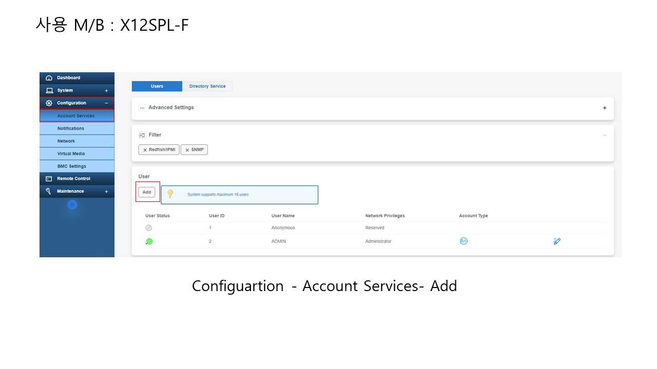 (1) User: 시스템 상태, FRU, 이벤트 로그를 볼 수 있는 기본 권한입니다.
