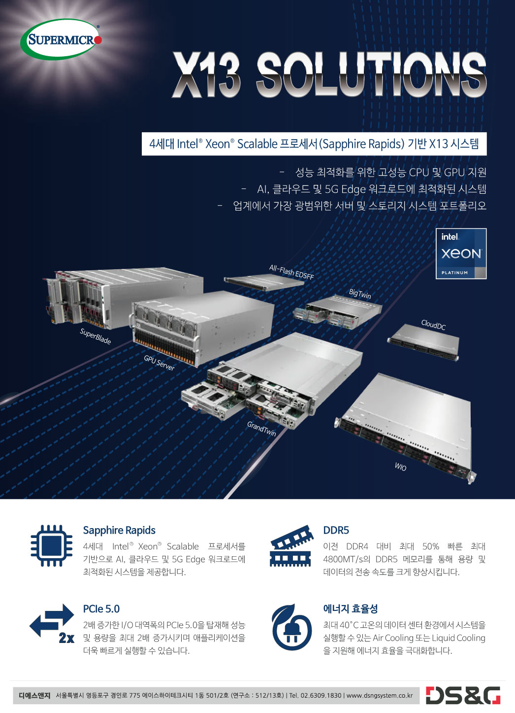 [슈퍼마이크로] 4세대 Intel® Xeon® Scalable 프로세서(Sapphire Rapids) 기반 X13 시스템