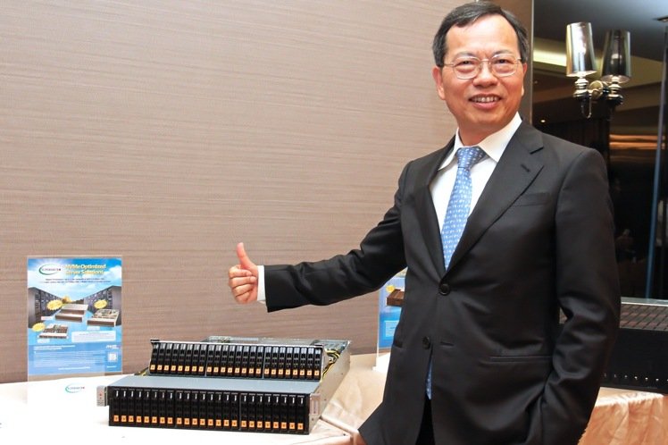 사진은 슈퍼마이크로의 CEO이자 설립자인 리앙(Liang). 그는 슈퍼마이크로가 기술 지향적인 기업 이념을 통해 2U(시장 내 대다수 서버가 2U)에 48개의 핫 스왑 2.5" SSD를 지원할 수 있는 SuperStorage 시리즈와 같이 놀라운 제품을 계속해서 출시할 수 있다고 밝혔다. Peng Zaihao / 사진사