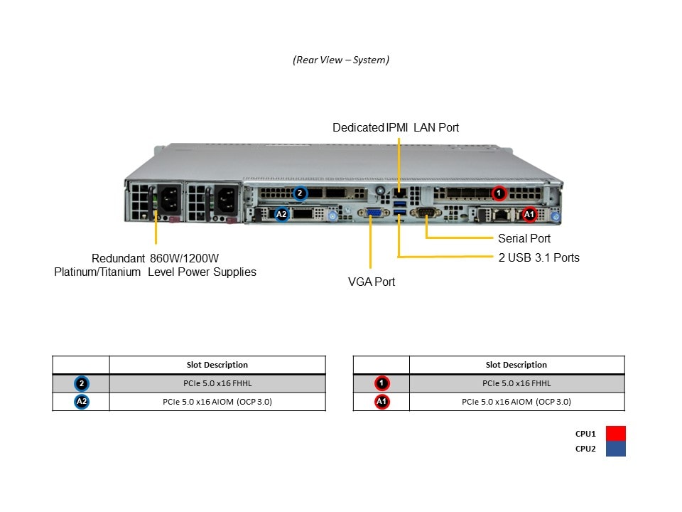 | *Power Supply | PWS-860P-1R2 | 2 | 1U 860W, Redundant power supply, 54.5mm width, Platinum with |